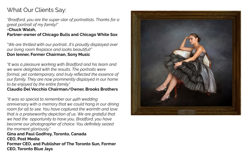 Bradford Portraits Sitting in New York or Miami including hotel